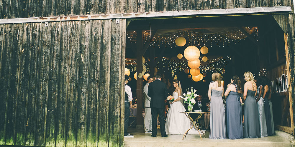 From the upper gardens, guests cross a wooden bridge over the millrace that powers the 1797 Shriver Grist Mill, then stroll through charming gardens below, to the Tannery for the reception.
