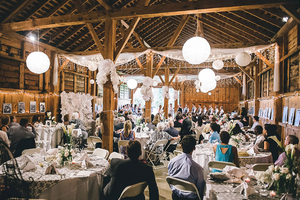 The rustic elegance of the Tannery blends perfectly with table settings for your reception event. The Tannery can accommodate seating for up to 150 guests, and we can expand to handle even more! (Photo courtesy of Ian Dawson, C&I Photographers.)
